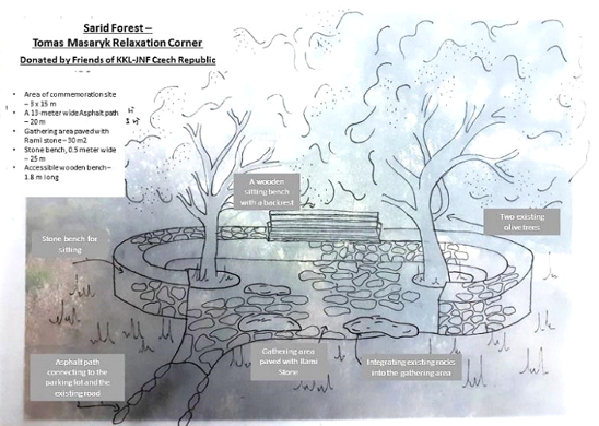 Na počest Tomáše Garrique Masaryka (1850 – 1937), prvního československého prezidenta a jako dar k jeho 80. narozeninám, občané Československa (nejen Židé), vysadili jeden z prvních lesů, který byl pojmenován po státníkovi. Les z olivovníků, sosen a cypřišů byl vysazen nedaleko kibucu Sarid (založeného emigranty z Československa a východní Evropy). Slavnostní ceremonie se odehrála v dubnu 1930, za účasti československého gen. konzula a představuje Jišuvu (reprezentanta židovského obyvatelstva u Britské správy), Menachema Usiškina (1863 – 1941), který také v té době vedl KKL-JNF. T.G.Masaryk věřil ve svobodu a v právo na sebeurčení a sdílel vize sionistického hnutí a KKL-JNF. To také mnohokrát potvrdil při své návštěvě tehdejší Britské mandátní Palestiny.