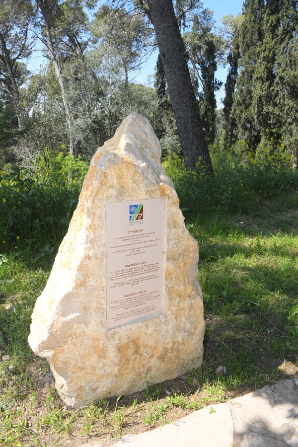 Masarykův les je dnes živoucí dar prezidentu Masarykovi, jako symbolické gesto díků za jeho zásluhy v boji proti antisemitizmu. Na počest Tomáše Garrique Masaryka (1850-1937), prvního československého prezident, a jako dar k jeho 80. narozeninám, občané Československa (nejen Židé), vysadili jeden z prvních lesů, který byl pojmenován po tomto státníkovi. Les z olivovníků, sosen a cypřišů byl vysazen nedaleko kibucu Sarid (založeného emigranty z Československa a východní Evropy). Slavnostní ceremonie se odehrála v dubnu 1930, za účasti československého gen. konzula a představitele Jišuvu (reprezentanta židovského obyvatelstva u britské správy) Menachema Usiškina (1863-1941), který také v té době vedl také KKL-JNF. T. G. Masaryk věřil ve svobodu a v právo na sebeurčení a sdílel vize sionistického hnutí a KKL-JNF. To také mnohokrát potvrdil při své návštěvě tehdejší Britské mandátní Palestiny