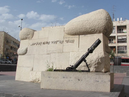 Druhý snímek ukazuje kamenný panel s popisem událostí s tímto dělem spojený, zde je anglická verze, z druhé strany to je hebrejsky. Ten podivný obejda vedle místní celebrity je moje maličkost.