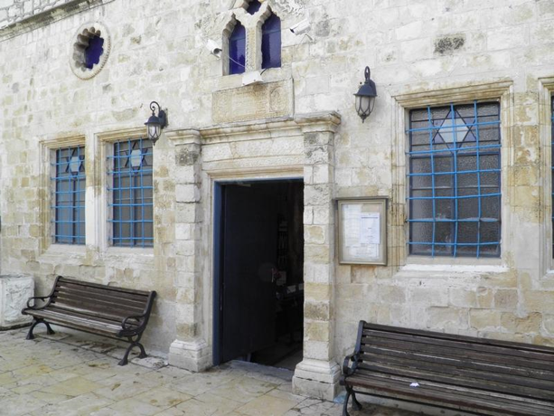 Vstup do místní synagogy. Je to nenápadná portál, ale za ním se skrývá krása…