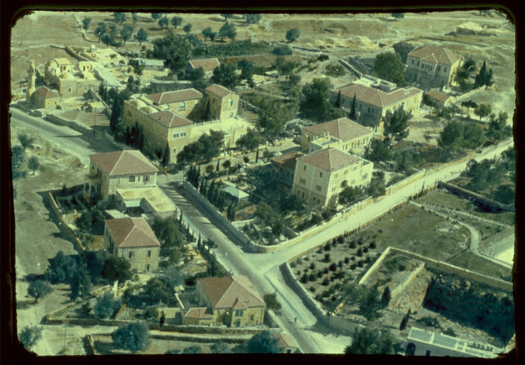 Kolorovaná fotografie Americké kolonie v Jeruzalémě – rok asi 1965, letecký snímek