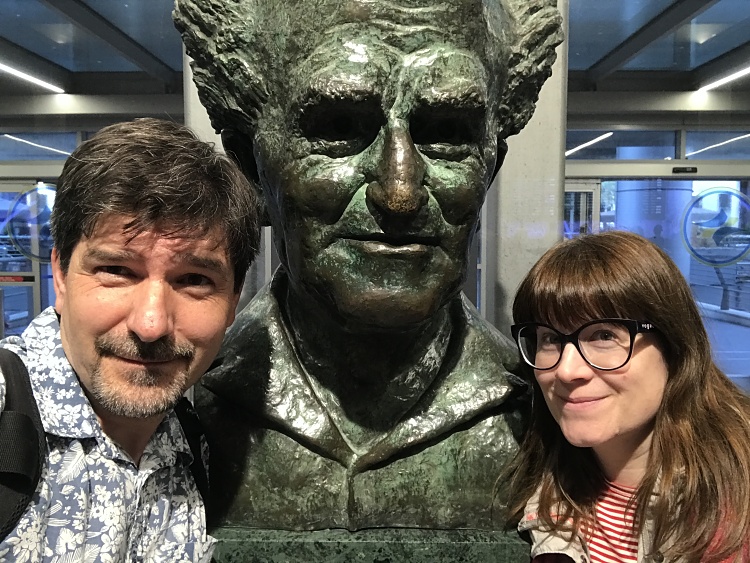 Ale nyní musíme vyřešit, jak se dostaneme do našeho hotelu v Jeruzalémě. Že nestihneme vlak ani autobus, to jsme věděli. Tak co šerut? Jinak obvyklá levná varianta dopravy po Izraeli? Než se podíváme ven z letištní haly, a zjistíme tak pravý stav věcí, chceme si udělat fotku s Daviden Ben Gurionem, jehož jméno toto mezinárodní letiště nese. Tedy, jen s jeho bustou, protože samozřejmě už dávno zemřel, byl to první ministerský předseda Státu Izraeli, jeden z Otců zakladatelů. Pak vybrat nějaké šekely, nejlevněji to vyjde vždy kartou z místního bankomatu. Kurz 6,20 korun za šekel. Pamatuji doby, kdy stával necelých pět korun. Šekely posílily, anebo koruna zeslábla. Anebo obojí.